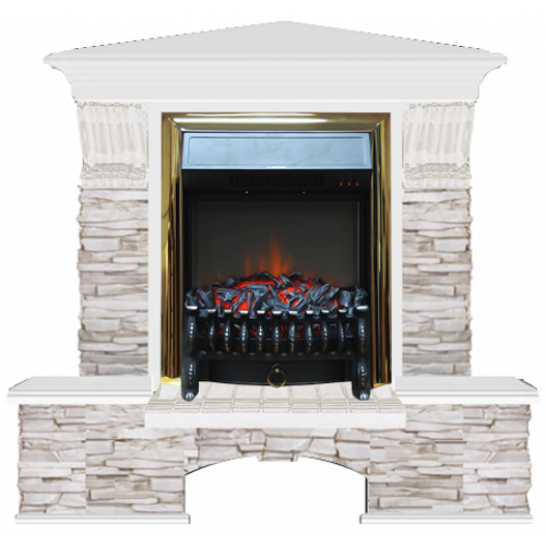 Каминокомплект Glenrich Бостон К Мисхор угловой (белый)+Fobos Brass