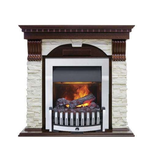 Каминокомплект «Dublin» от производителя Dimplex, оборудованный паровым очагом «Danville Chrome», отличается приятным сочетанием оттенков. Благодаря этому камин, в котором сочетаются камень и дерево, выглядит совершенно не массивно. За счет этого и относительно небольших габаритов изделия допустима его установка в небольших по площади помещениях.