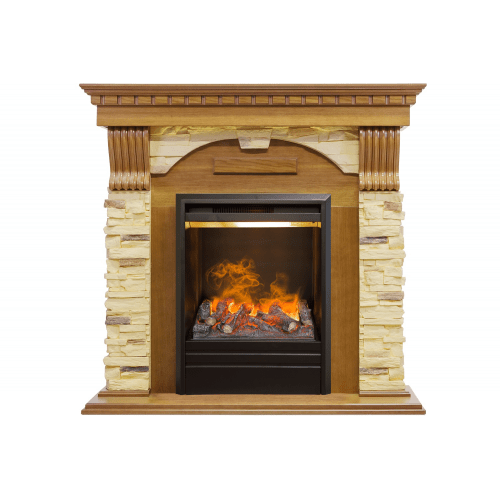 Каминокомплект «Dublin» арочный сланец оборудован современным паровым очагом «3D Olympic» от производителя Real Flame. Английский стиль, в котором выполнен портал, придает изделию более благородный и основательный вид. Классика стиля подчеркнута отделкой из камня, стилизованного под дикий сланец. Такая облицовка отлично гармонирует с имитацией древесины дуба. Представленный каменный камин имеет относительно компактные габариты. Поэтому даже при установке в небольших помещениях он не будет загромождать пространство.