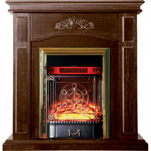 Каминокомплект InterFlame Марго (темный дуб)+Majestic Brass