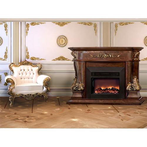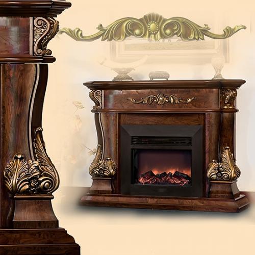 Этот великолепный электрокамин Палас выполнен в стиле лучших классических традиций. Портал изготовлен из МДФ, цвет, использующийся для покрытия деревянных поверхностей электрокамина, имитирует экзотическое дерево Южной Америки - мербау. Низ колонн украшен резьбой из листвы аканта, покрытой бронзовым напылением. Электрокамин роскошен, необычен, прекрасно украсит ваш зал или спальню. В электрокамин встроена электротопка с ярким эффектом горения дров в очаге камина, электротопка имеет пульт управления и двухступенчатую систему обогрева 1000-2000 Вт. В декоративном режиме (без обогрева) потребляемая мощность - 80 Вт. Электрокамин «Палас» своим необычным дизайном будет восхищать и радовать вас, ваших близких и друзей. Этот красивый электрокамин прекрасно подойдет для любого интерьера в классическом стиле, и в гостиную, и в спальню, и в холл. Отделка портала по фризу электрокамина - «золоченая резьба». В портал электрокамина встроена электротопка, имеющая пульт ДУ, двухступенчатую систему обогрева 1000-2000 Вт и яркий реалистичный эффект пламени горящих дров в очаге камина.