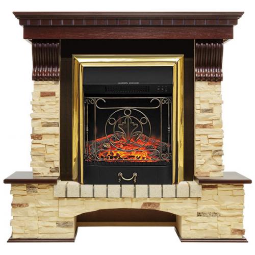 Каминокомплект Royal Flame Pierre Luxe сланец (темный дуб)+Majestic FX Brass