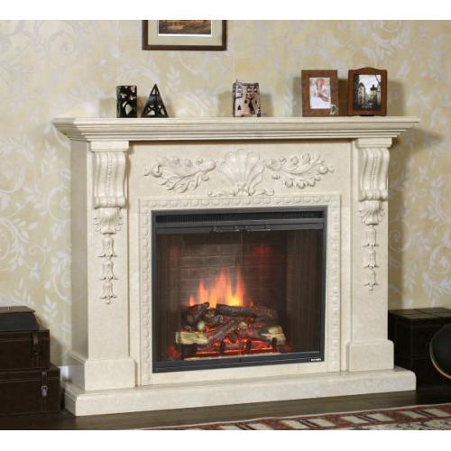 Мраморный портал SARA подойдет под широкий очаг от RealFlame.