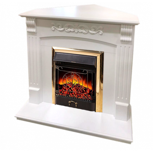 Каминокомплект Royal Flame Sorrento угловой (белый дуб)+Majestic FX Brass