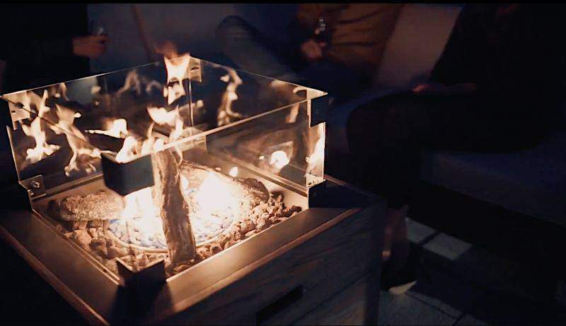 Очаг стола камина заполняется лавовыми или стеклянными камнями и Ваш уличный стол камин готов к использованию.