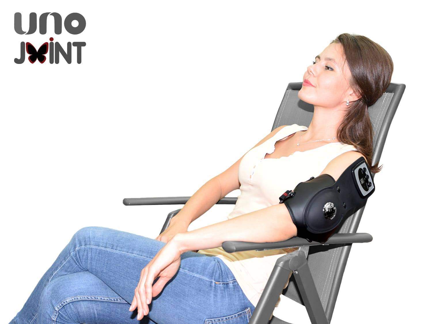 Устройство используется не только в ходе терапии колен, но также и при воздействии на руки, локтевые суставы и плечи, что значительно расширяет диапазон эксплуатации. Электроды, изготовленные из серебра, обладают антимикробным действием.Массажёр UNO Joint – прекрасный помощник для людей, имеющих проблемы с суставами самого различного характера. Он показан при ушибах, болях, растяжениях, патологиях коленной чашечки, артритах, артрозах и т.д. При использовании улучшается кровообращение, возрастает подвижность, уходят болевые ощущения, снимается отёк, происходят другие серьёзные улучшения.