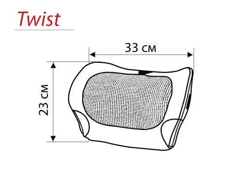 Много времени проводите за рулем? Делайте массаж прямо в машине и забудьте об усталостиВ комплекте с Twist2GO идёт адаптер 12В для работы от прикуривателя. Резинка на задней спинке помогает крепить подушку к сиденью
