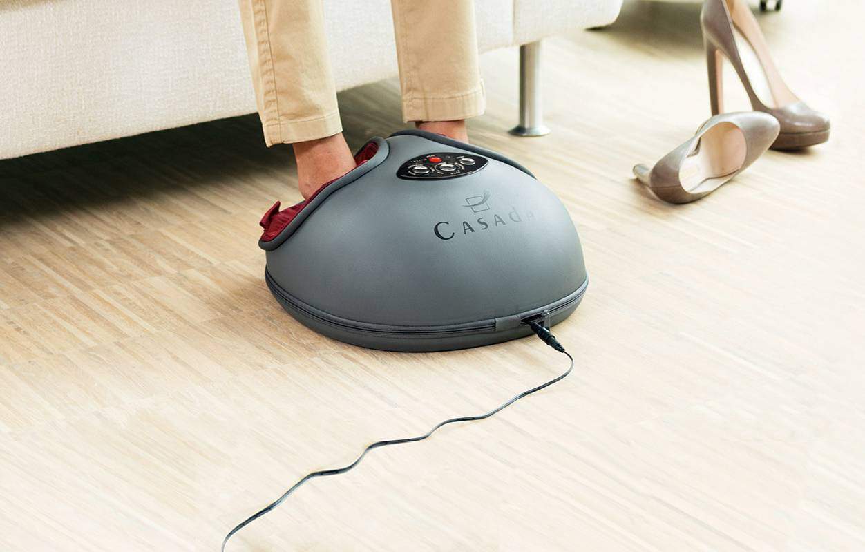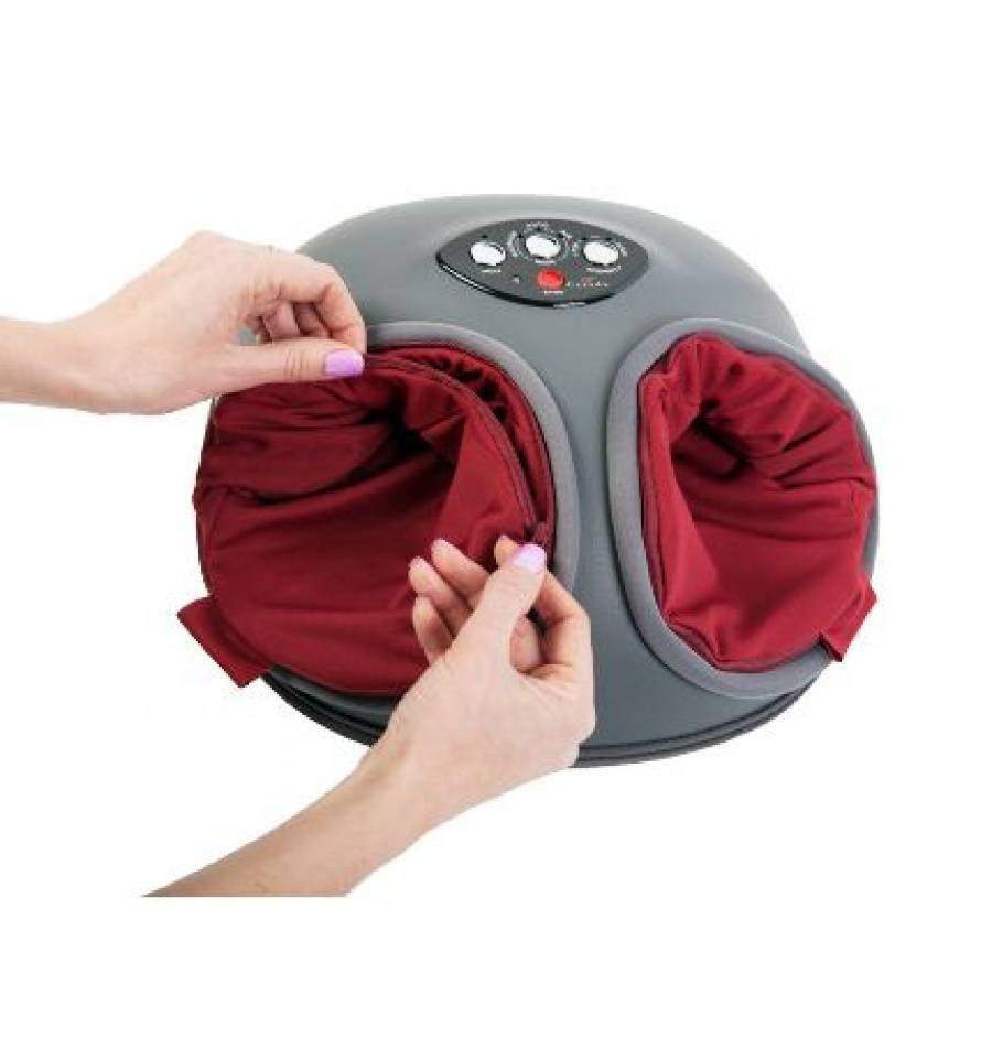 Массажёр FOOTINN сочетает роликовый, разминающий, компрессионный массаж и тепло терапию ступней.11 массажных акупунктурных элементов, работающие в двух скоростях, хорошо прорабатывают пальцы ног и свод стопы. Воздушно компрессионные подушки, попеременно сжимая и освобождая стопу, устраняют тяжесть в ногах. Такое воздушно-компрессионное воздействие способно снять усталость не только ног, но и всего организма. Они обладают противовоспалительным и обезболивающим действием, активизируют и тонизируют работу нервной, кровеносной и лимфатических систем.