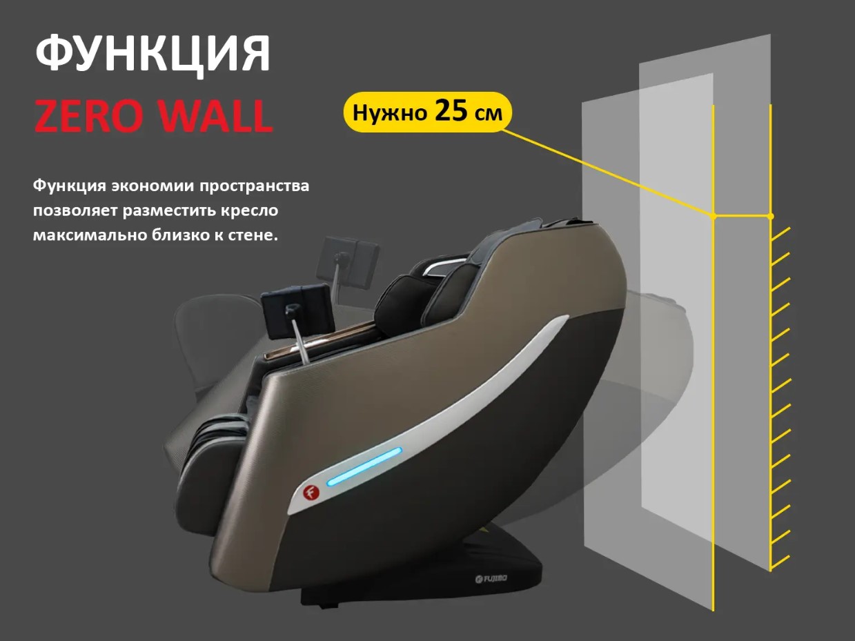 Функция ZERO WALL в кресле FUJIMO KENKO позволяет разместить кресло в 25 см от стены.