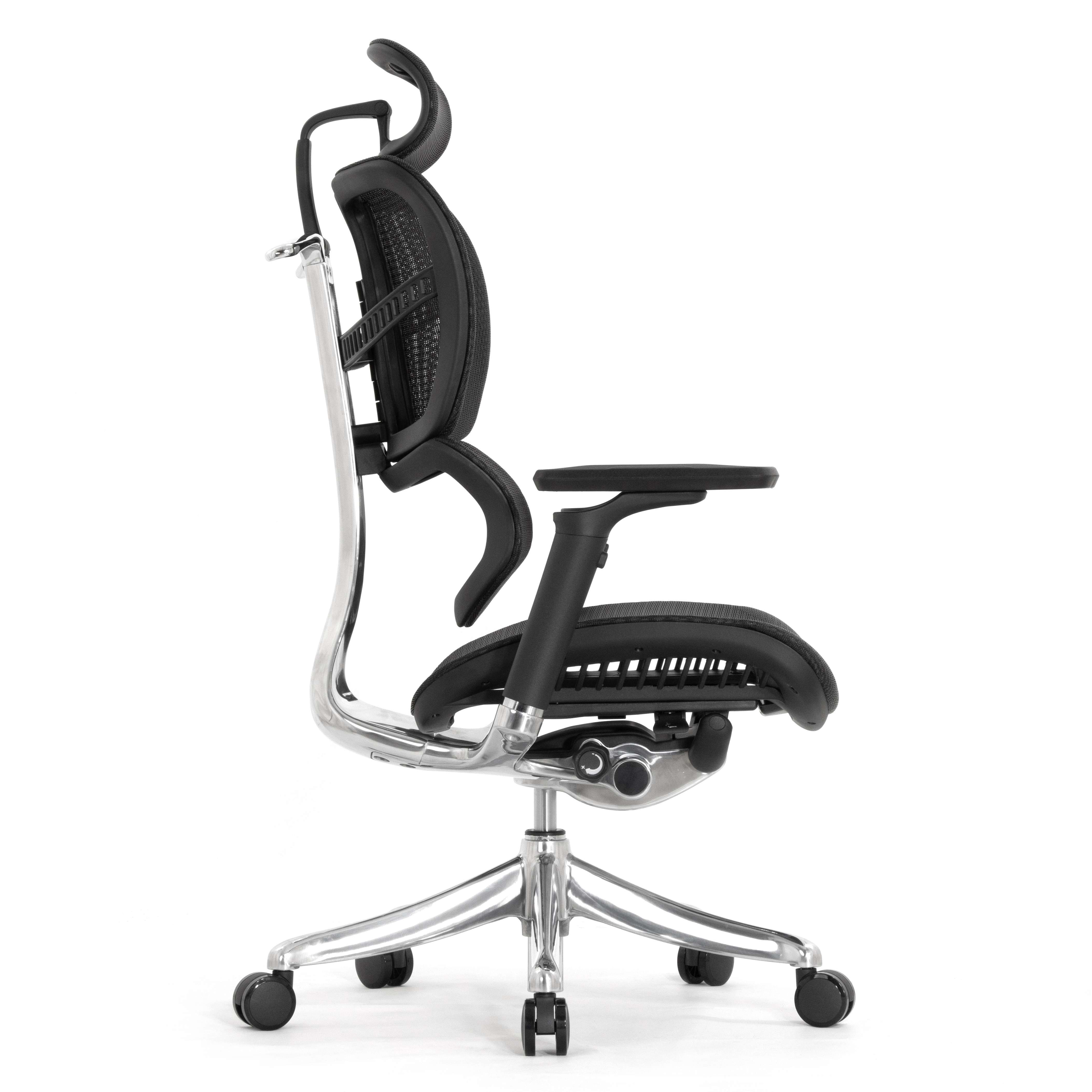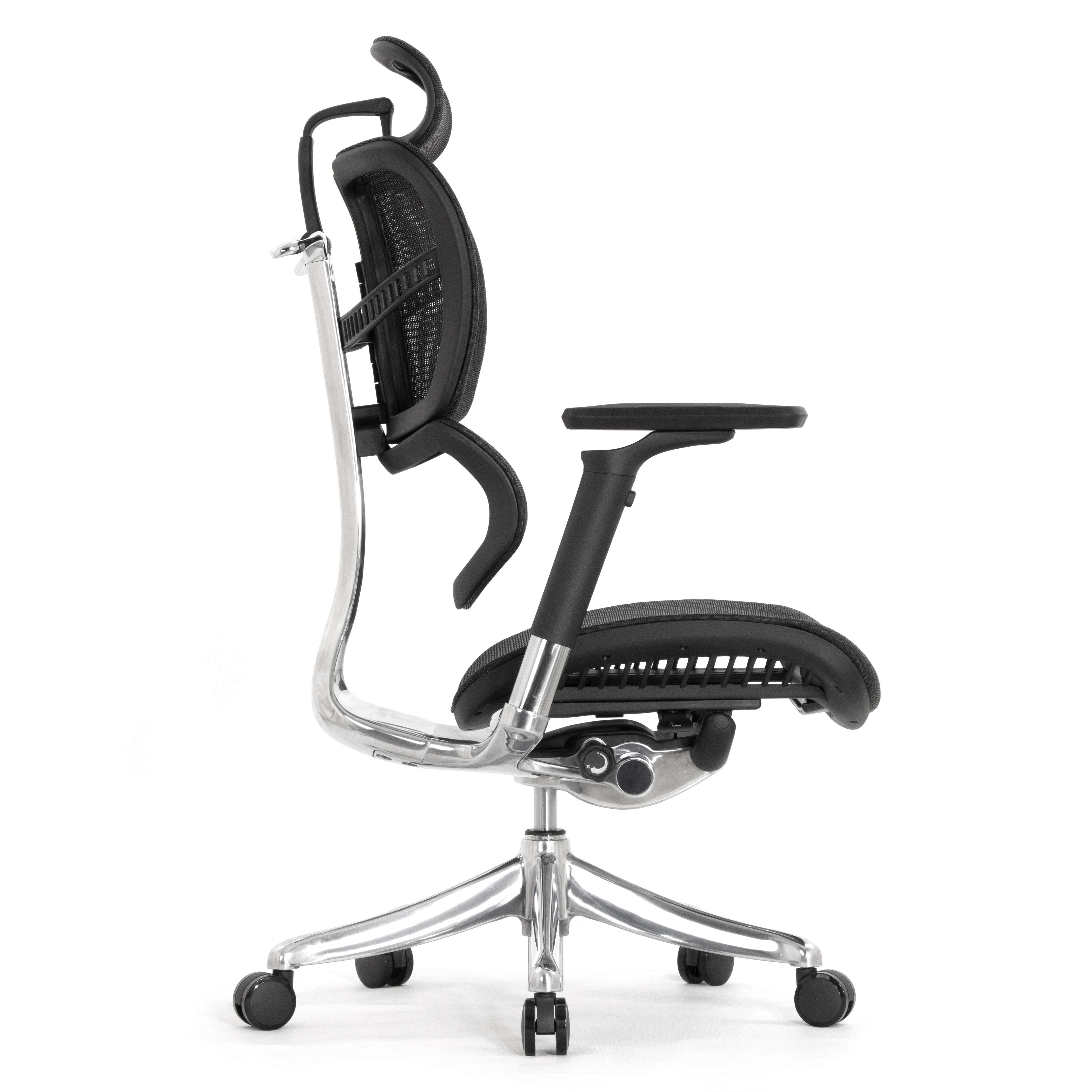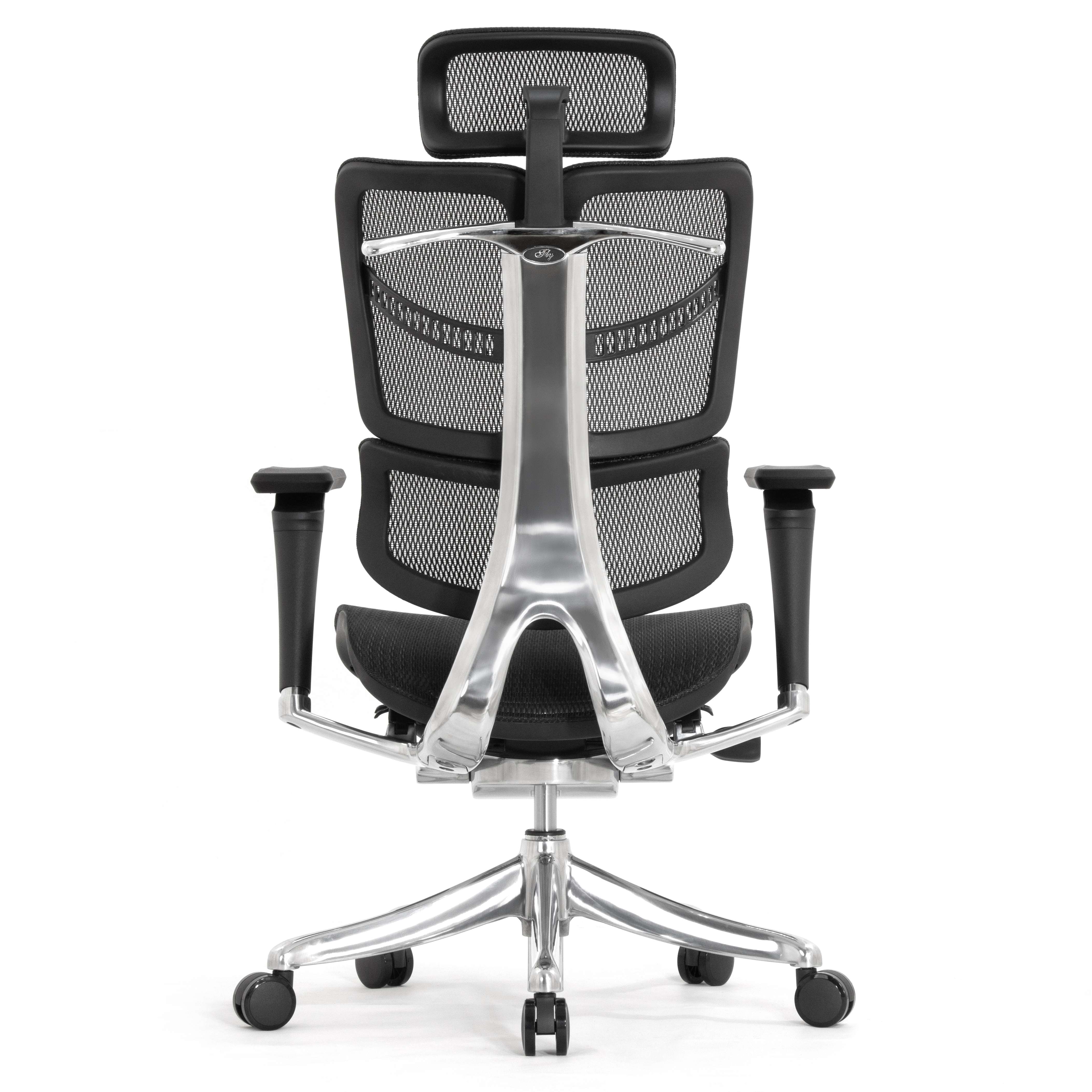 Каркас кресла и механизм выполнены из алюминиевого сплава и тщательно отполированы. Литая металлическая крестовина кресла с высоким креплением лучей. Пять оригинальных колёс с мягким покрытием.