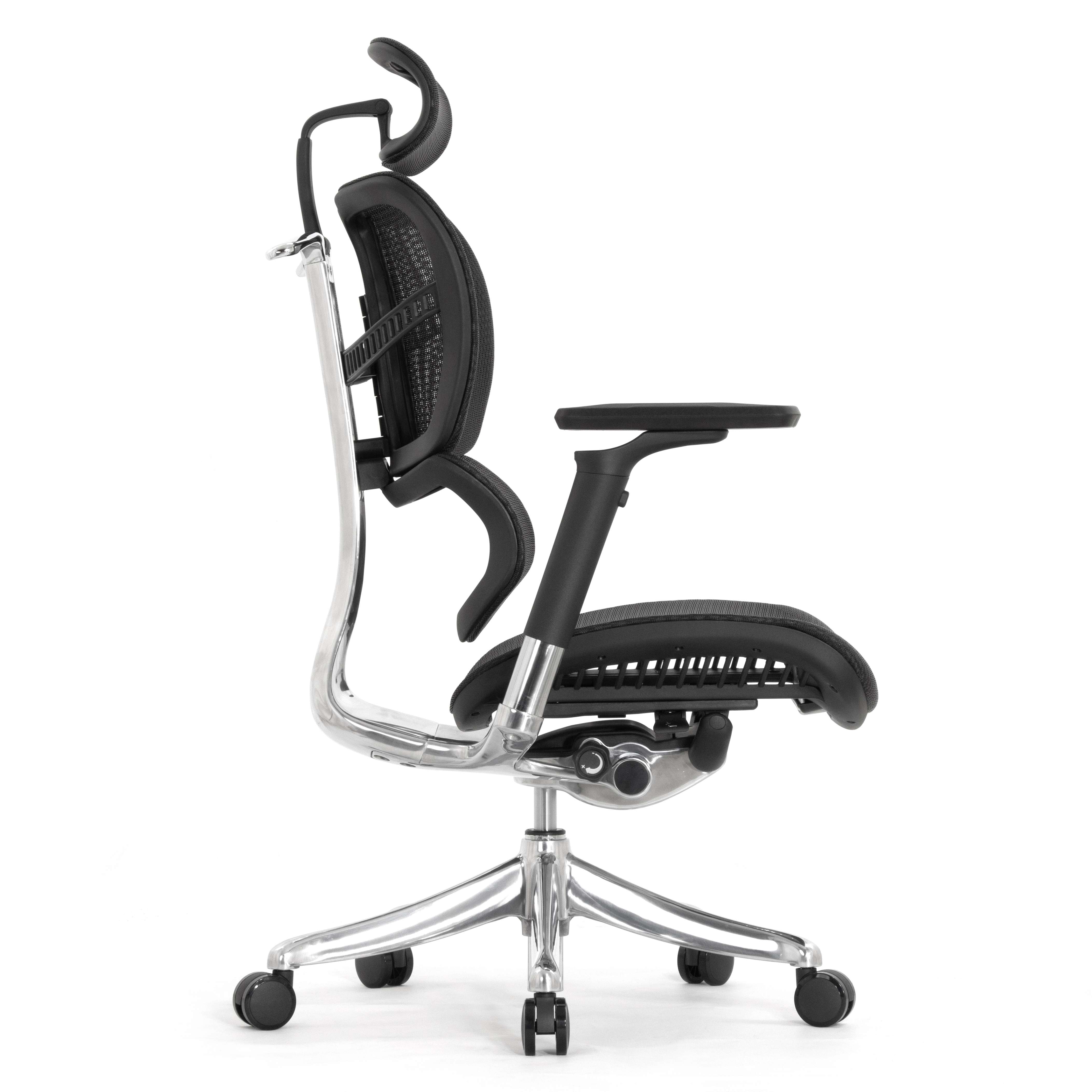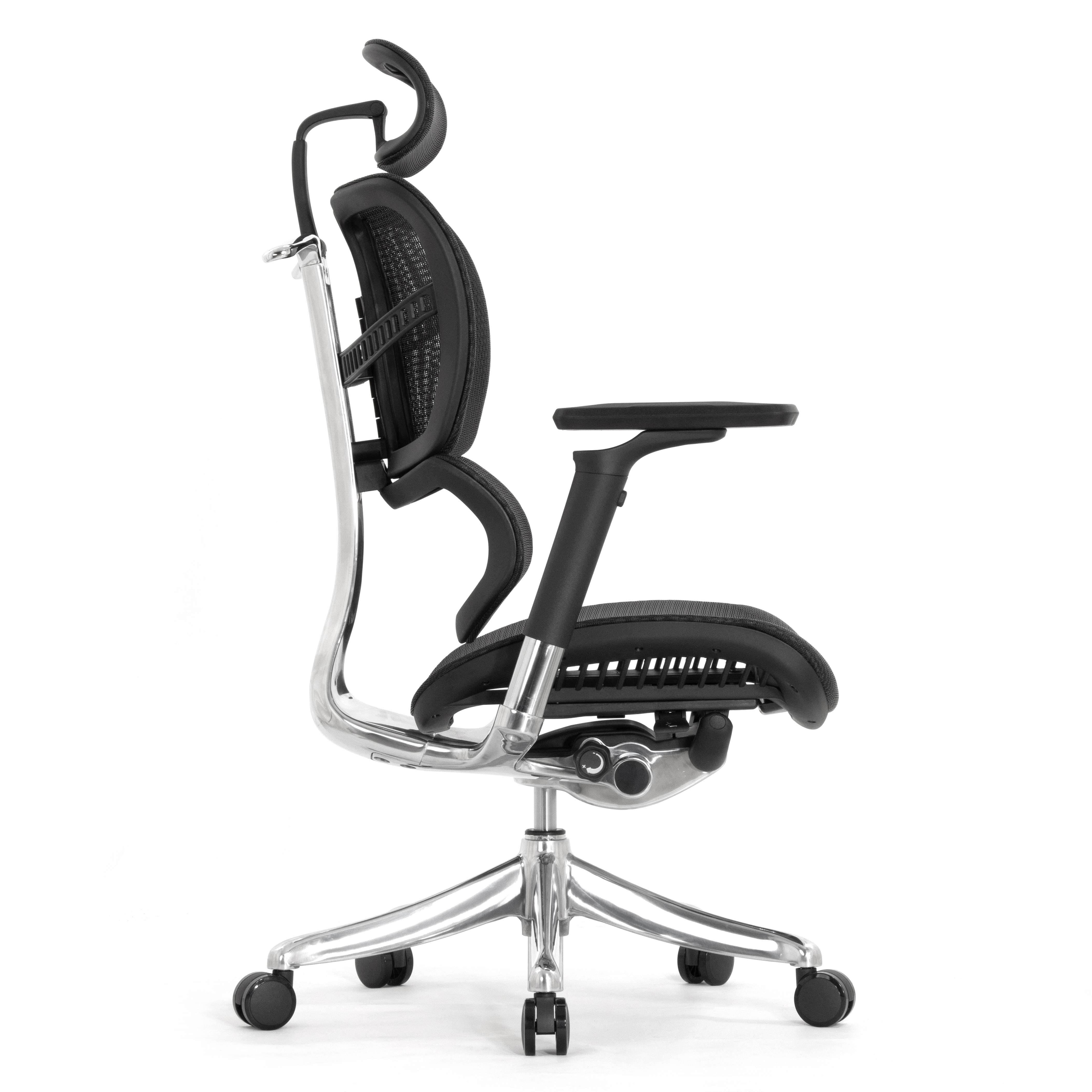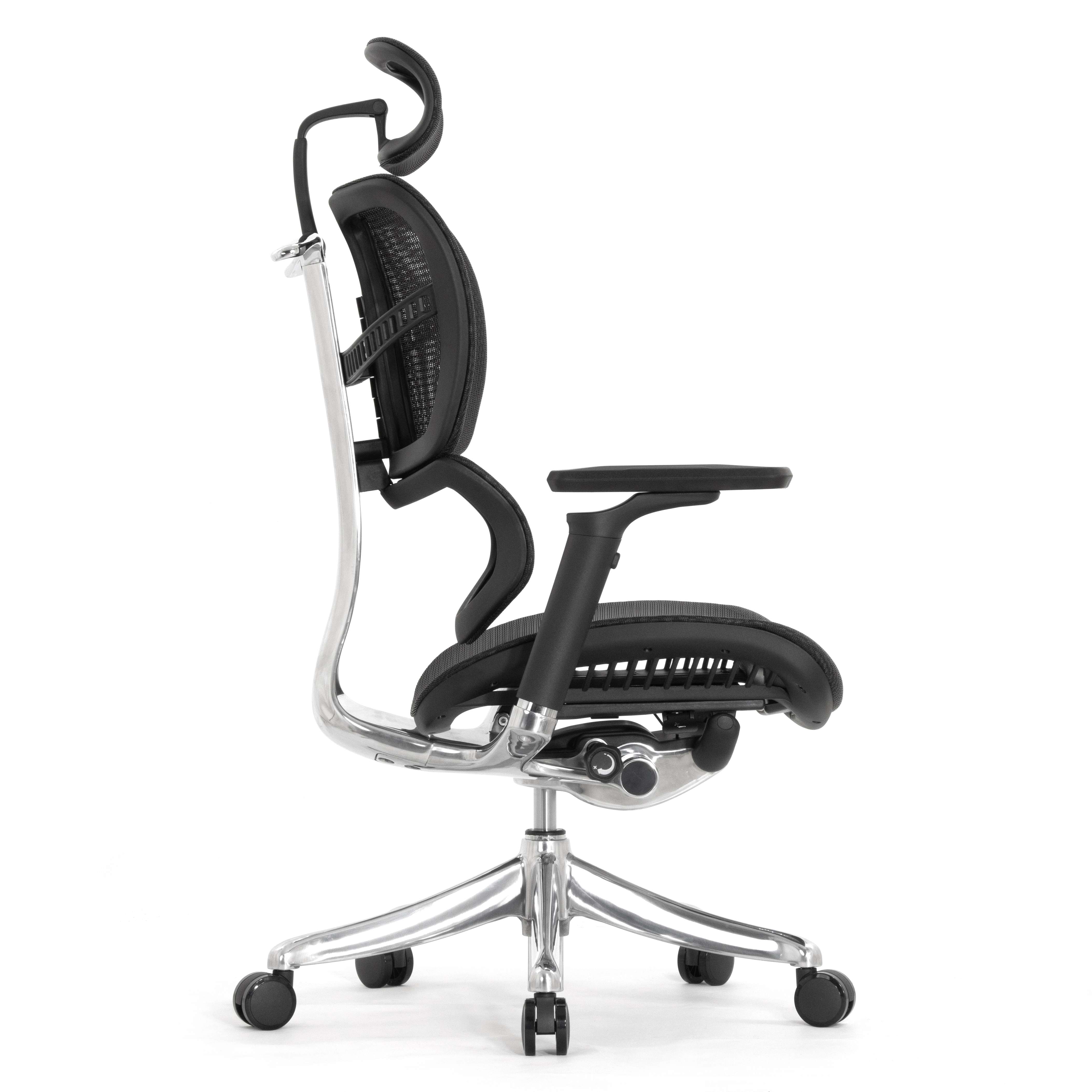 Каркас кресла и механизм выполнены из алюминиевого сплава и тщательно отполированы. Литая металлическая крестовина кресла с высоким креплением лучей. Пять оригинальных колёс с мягким покрытием.