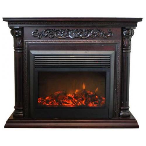 Классический каминный портал "Chamonix 26" с богатым украшением. Полукруглые колоны портала, сверху украшенны красивыми декоративными элементами. На верхней передней панели растительная аппликация из натурального шпона. Обрамление, вокруг самого очага, выполнено из узорчатой рамки.