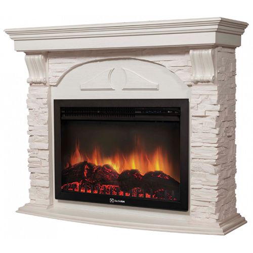 - Отделка: искусственный камень «Сланец» белый