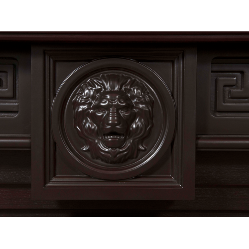 Каждый элемент на фасаде продуман до мельчайших нюансов. Стремящиеся вверх линии на полуколоннах гармонично сочетаются с греческим орнаментом и балюстрой. Центральная часть порталов увенчана головой рычащего льва — символа силы, власти и мощи.