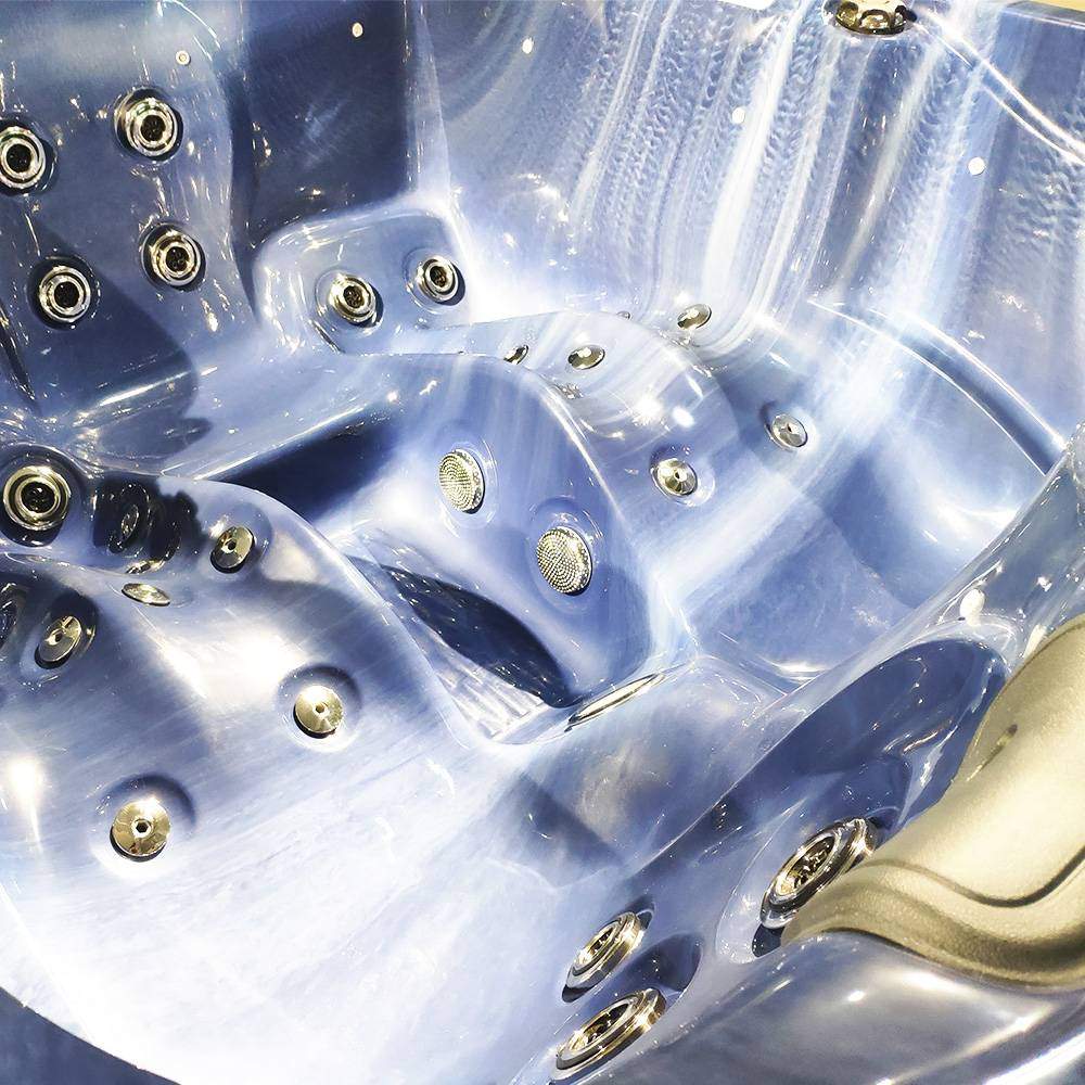 На сегодняшний день спа-бассейн с гидромассажем представляет собой акриловую чашу усиленную несколькими слоями композитного материала. Чаша изготавливается с несколькими сидячими и лежачими местами, в дизайнерском стиле и множеством вариантов расцветки. При изготовлении в нее встраиваются гидромассажные форсунки, которых в современном исполнении насчитывается множество типов.