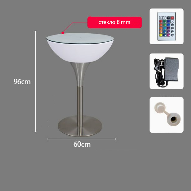 Стол светящийся круглый на металическом основании 60х60х96