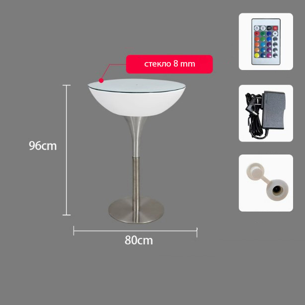 Стол светящийся круглый на металическом основании 80х80х110